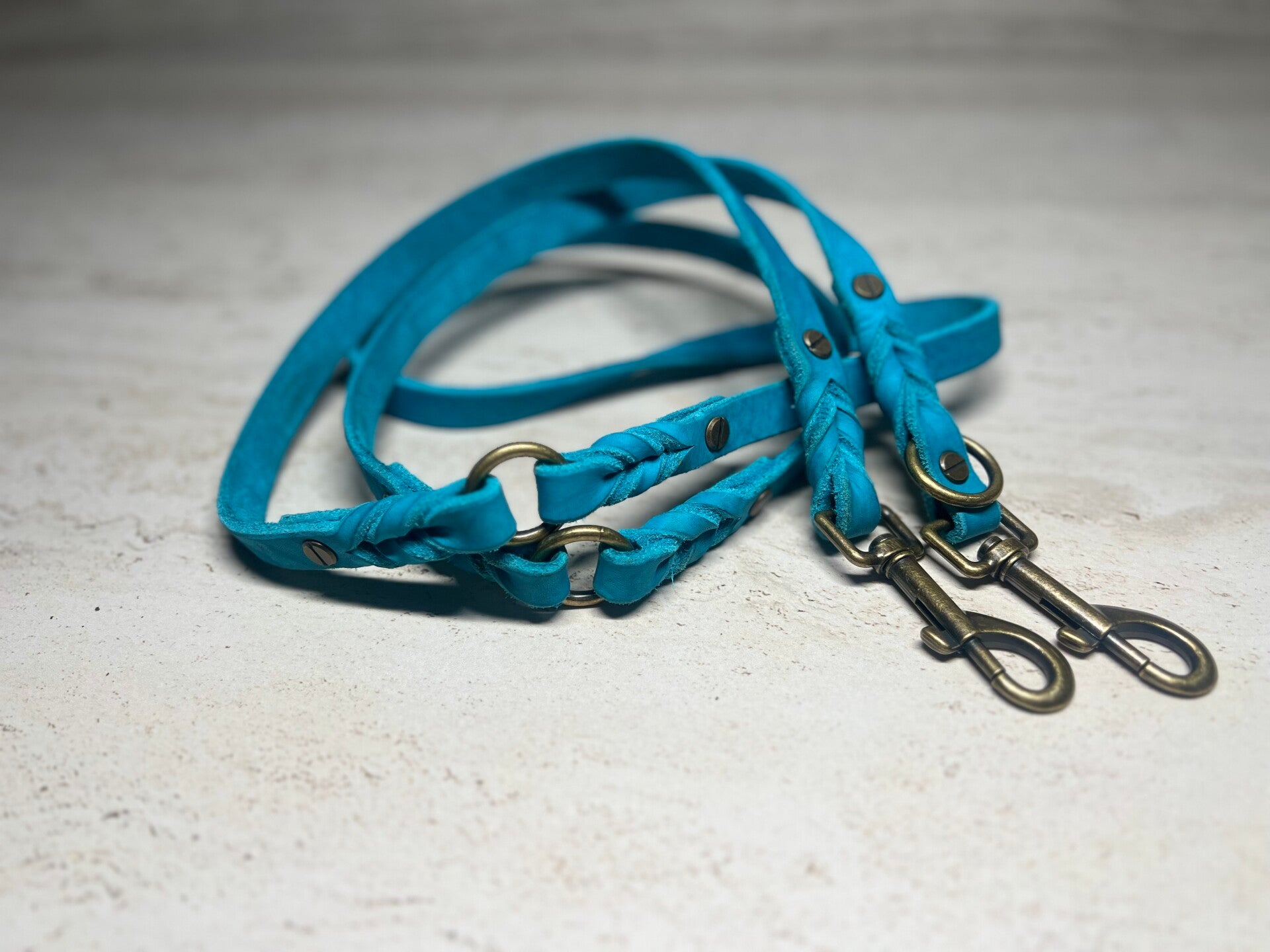 - De normale riem bevat 1 musketon en een vast handvat, in het handvat zit een ring zodat je hem om je lichaam kunt hangen als je hond los loopt.