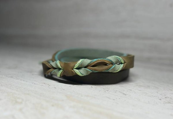 Ook bij deze halsband is het mogelijk om te kiezen uit een of twee kleuren leer.