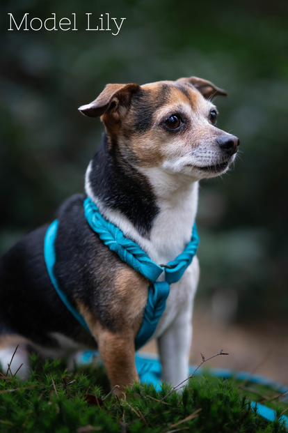 Een tuigje op maat gemaakt voor jou hond, met de keuze uit volledig vetleer (model lily), Vetleer met koord (model alfie) of Biothane met koord (model jaya).